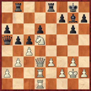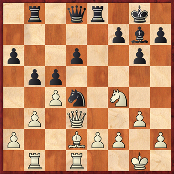 Черным удалось вызволить из заточения коня а5 и открыть линии для своих фигур, но слабость поля d5 определяет, все же, стойкую стратегическую инициативу белых. Компьютерные программы, впрочем, оценивают эту позицию как равную?!