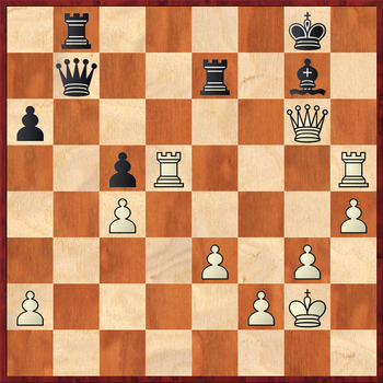 Следуя логике, черные решают сохранить слона для защиты и проигрывают партию. Компьютер же указывает удивительный ресурс - 34...Bxd2 35.Rxd2 d5!!. После 36.Nf4 (или 36.Qxd5 Rbd8 37.Qxh5 fxg6 38.Qxg6+; 36.cxd5 fxg6 37.Qxg6+ Kf8, и белым приходиться удовлетвориться вечным шахом, т.к. их ладья не может подключиться к атаке) 36...dxc4 у белых, похоже, не находится ничего больше ничьей.